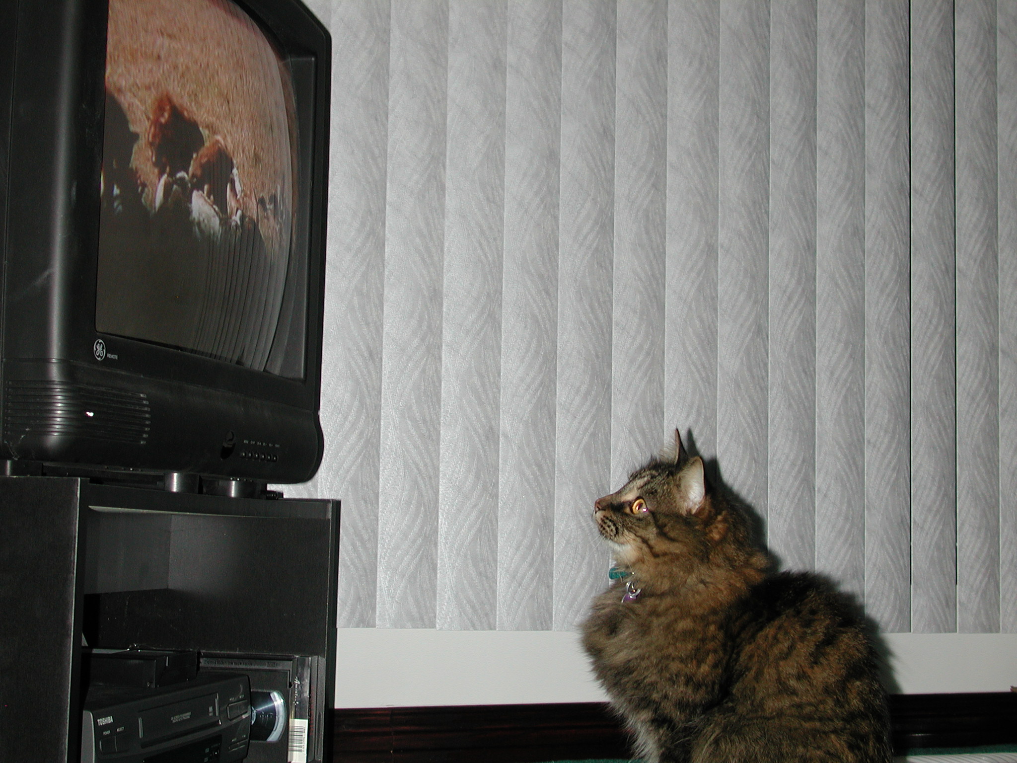 He likes nature shows. The other cats ignore the TV, and watch the VCR